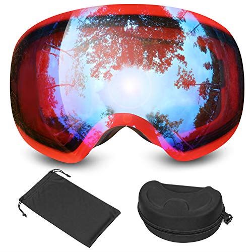 OUTDOORMASTERスキーゴーグル 両層磁気レンズ レンズ着脱可 UV100%カット メガネ対応 ケース付き 曇り止め 180°広視野 スノーゴーグル スノボートゴーグル スポーツ用ゴーグル 防風防塵防雪 防放射 耐衝撃 冬山登山/サバゲー/バイク/スキー運動に全面適用 マグネット...
