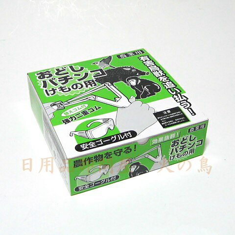 有害鳥獣撃退 農業用おどしパチンコ けもの用 強力二重ゴム 安全ゴーグル付 【特徴と効果】 「おどしパチンコ けもの用」は有害鳥獣に向けて威嚇するように撃ってください。